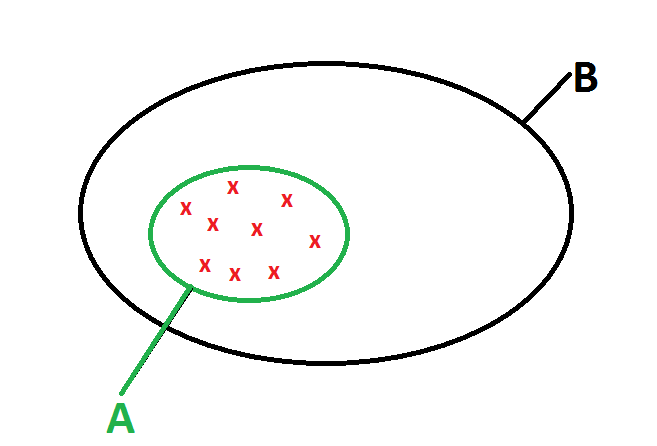 A taky muzou byt uplne vsude prvky y, z.... a taky to bude platit. Kreslit okolo cely vesmir nebudu. Nakreslil jsem to, o cem je zapis, tedy ze jakykoli prvek podmnoziny je zaroven i prvkem jeji nadmnoziny - v podstate jde o definici podmnoziny.