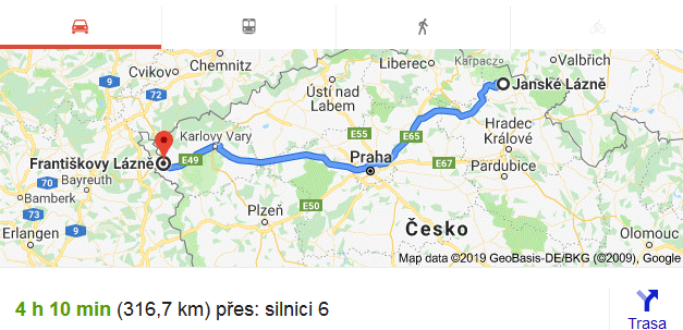 Ty dvě obce jsou od sebe vzdušnou čarou cca 230 km, nechcete si nejdříve rozmyslet, kam se vlastně chcete dostat?